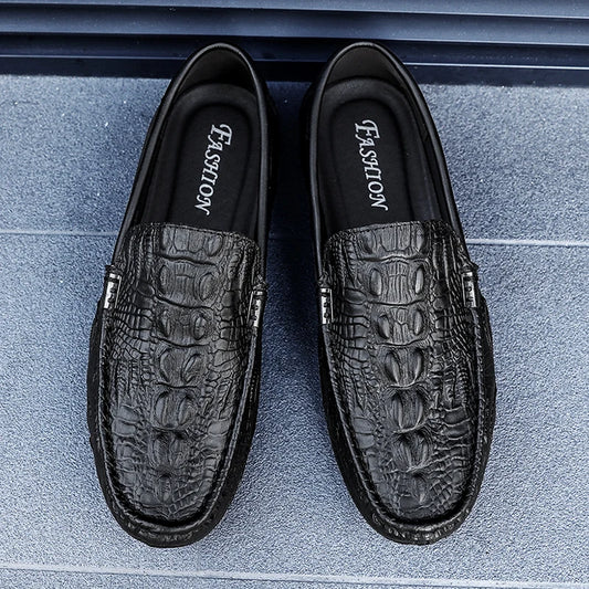 Voir le produitMocassins marron en cuir véritable à motifs crocodile