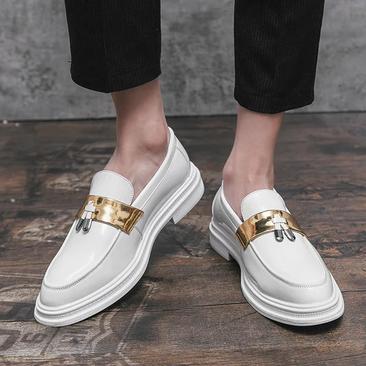 Voir le produitMocassins verni blanc avec languette or pour hommes